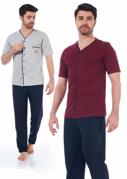 Estiva Penye Kısa Kol Boydan Düğmeli Erkek Pijama