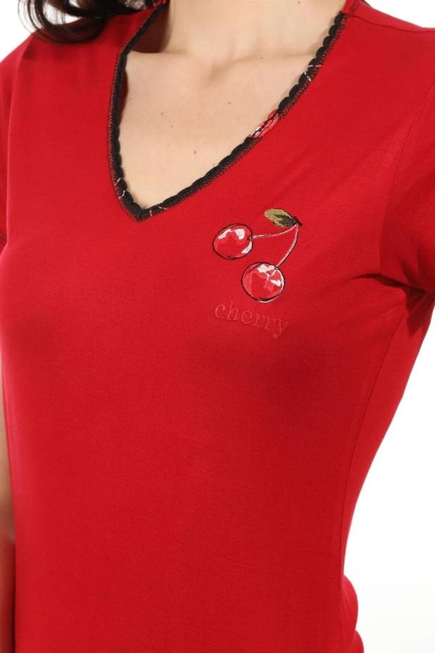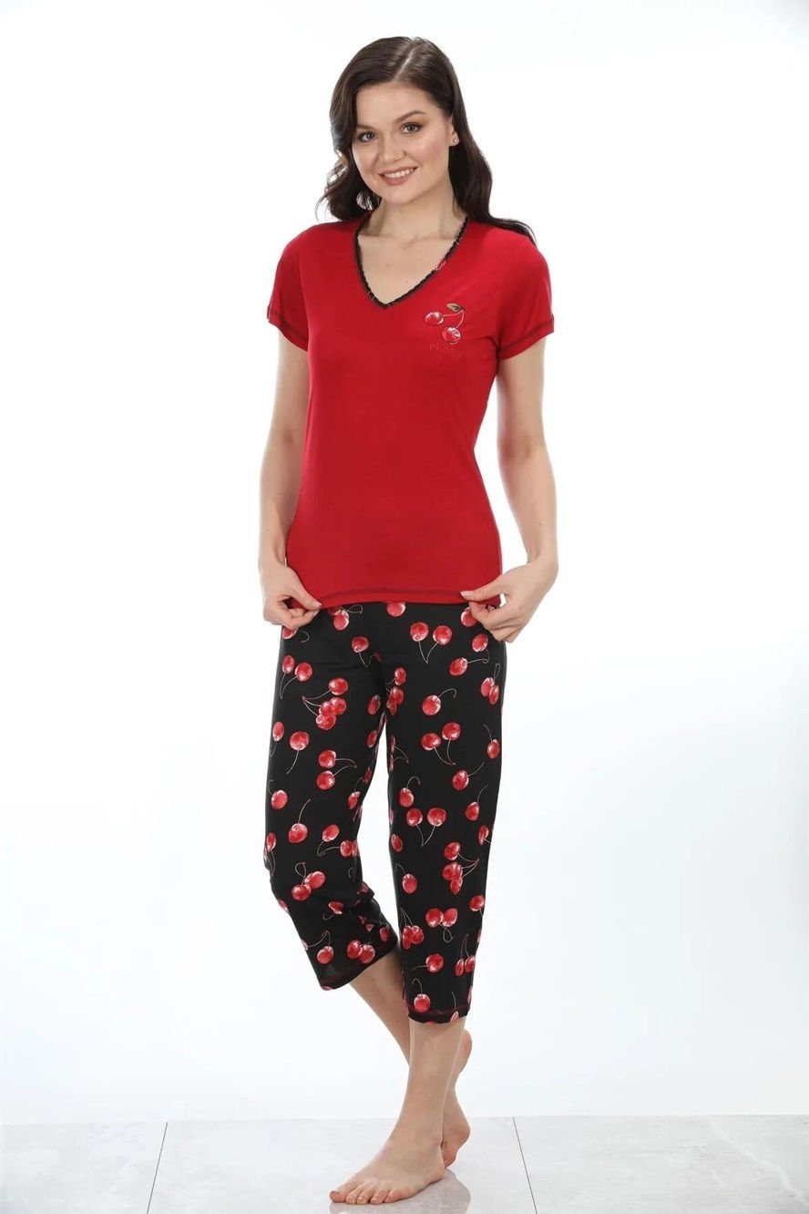 Etoile 71004 Bambu Kirazlı V Yaka Kısa Kol Bayan Kapri Takım 2PNL3W2456