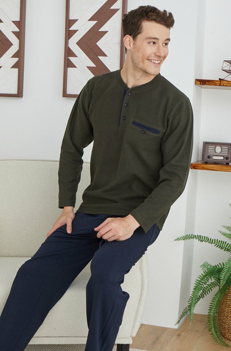 Kalın midi yaka kaliteli erkek pijama