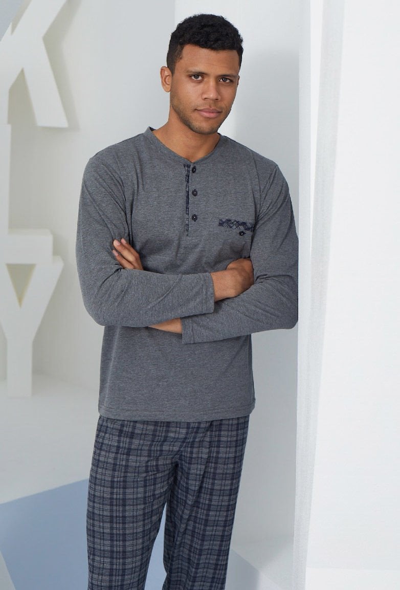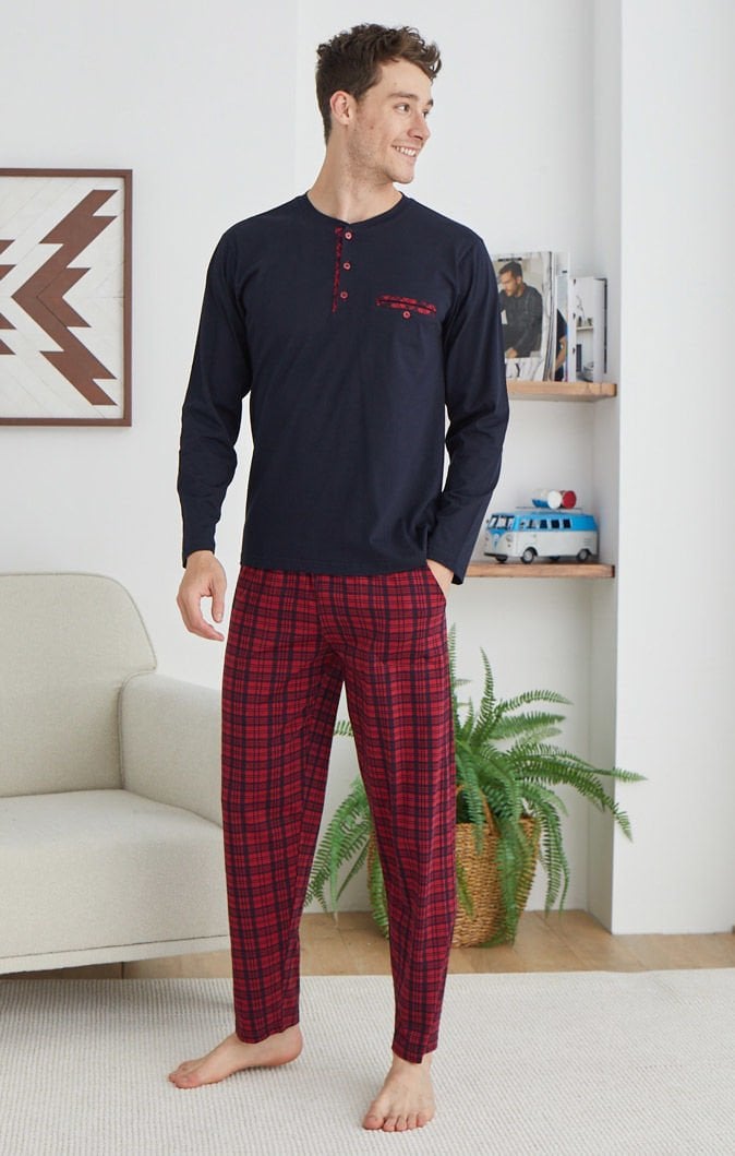 Dört mevsim severek kullanacağınız Kly uzun kol erkek pijaması kareli altı ile spor bir ev kıyafeti olarak kullabileceğiz gibi pamuk penye kumaş yapısıyla da rahat bir uyku uyumanızı sağlayan pijamanız olacaktır.