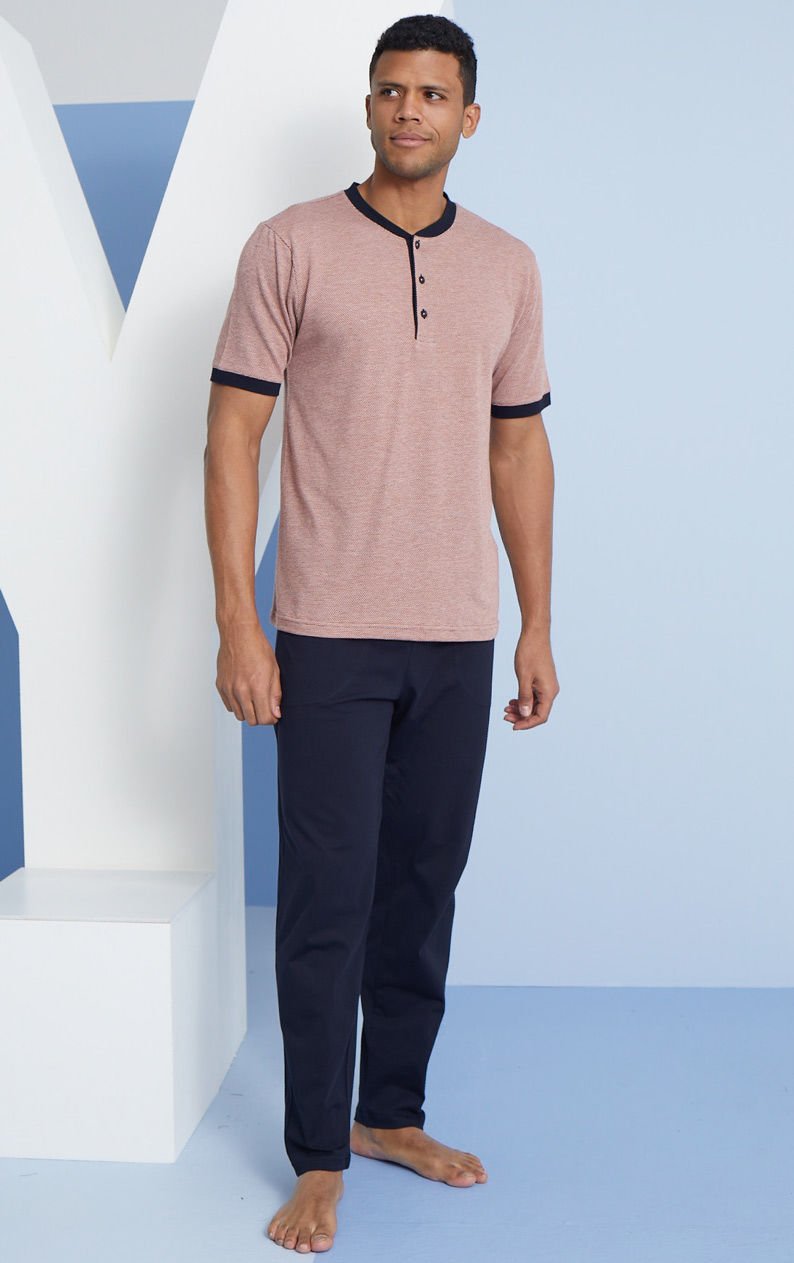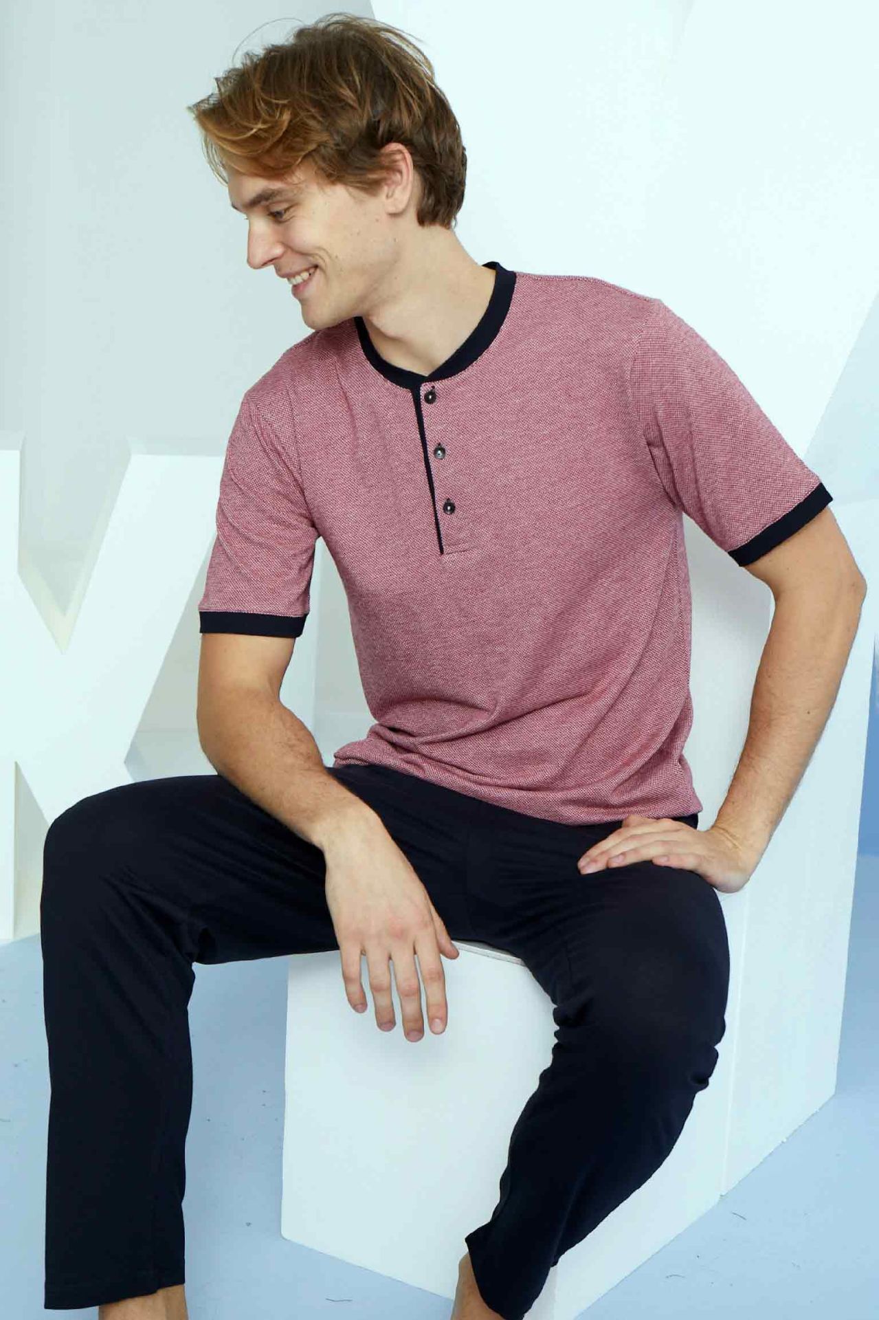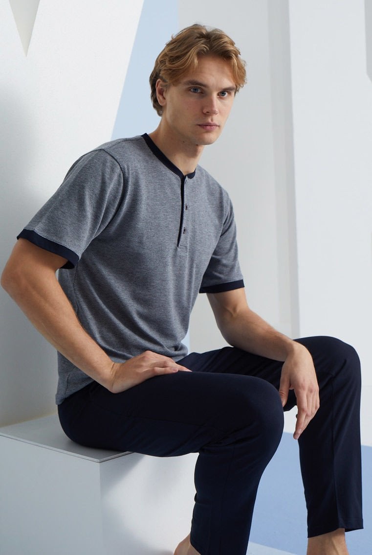 KLY midi yaka kısa kol erkek pamuk penye pijama rahat kullanım.