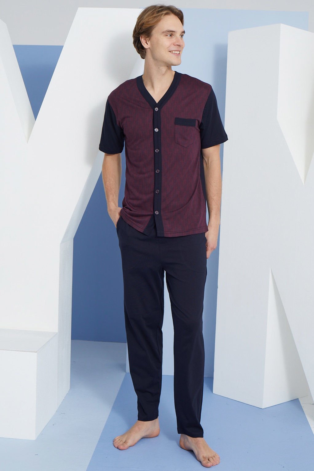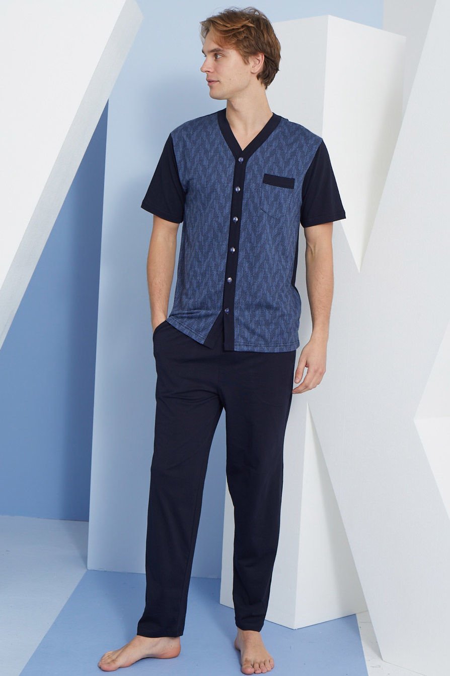 KLY 2105 kısa kol erkek önden tam düğme erkek yazlık pijama