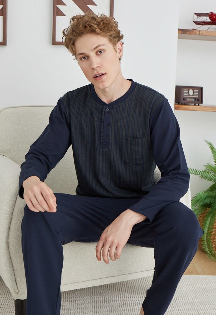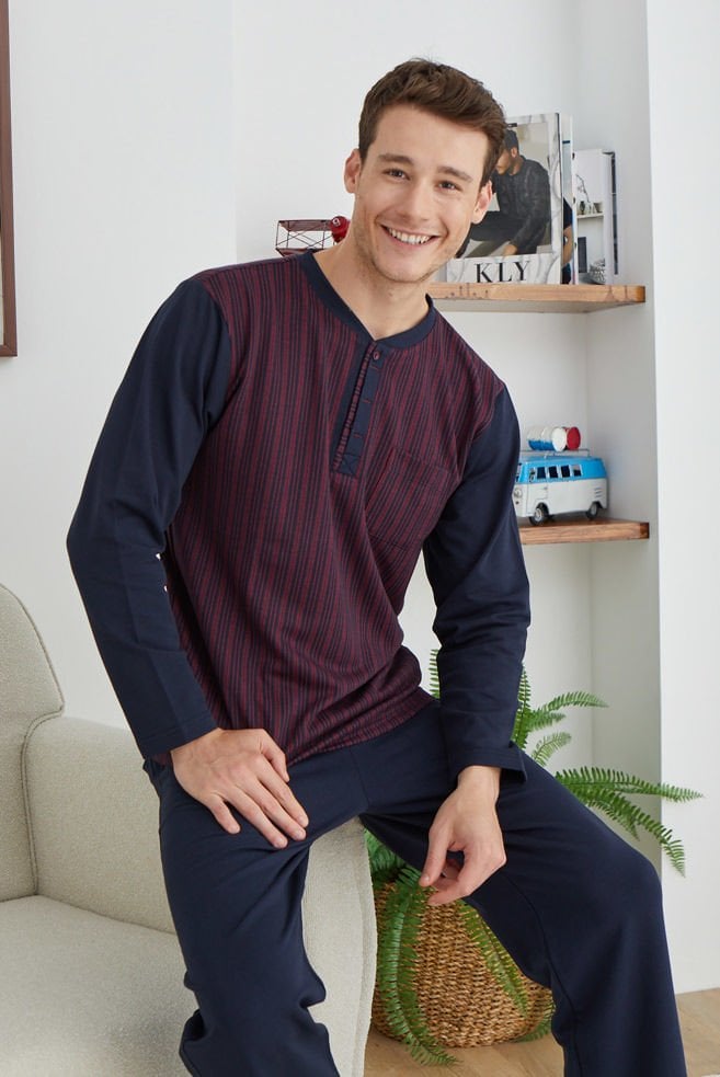 Kaliteli, orta kalın kumaşı ve şık tasarımı ile kaliteli erkek pijama.